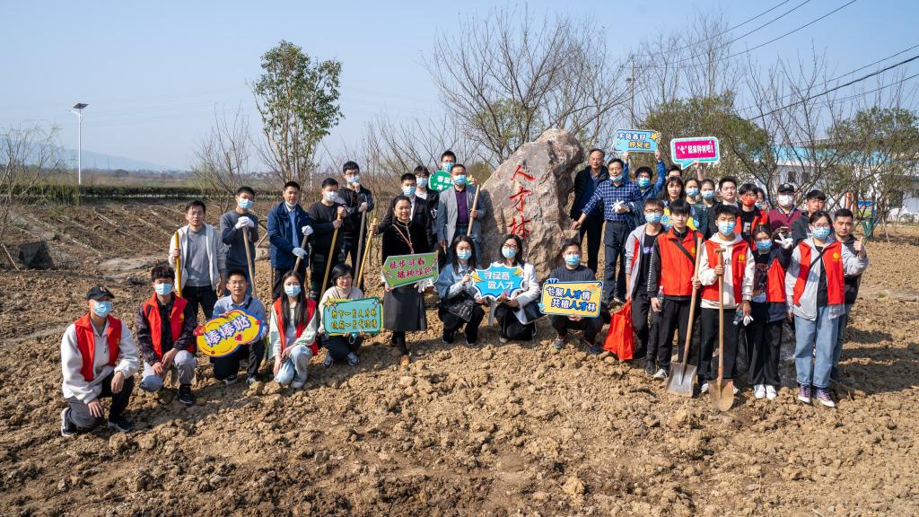 春风拂面,新绿初绽。3月11日,在弋江区委组织部、区委人才办的组织下,我校青年志愿者走出校门,来到白马街道新大垾村,参与了“共植人才林,同筑新弋江”高层次人才植树节活动暨“人才林”揭牌仪式活动。