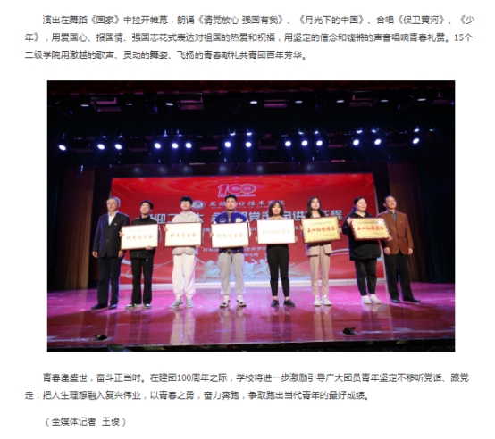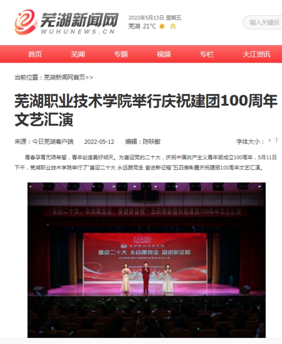 【今日芜湖】【芜湖新闻网】芜湖职业技术学院举行庆祝建团100周年文艺汇演