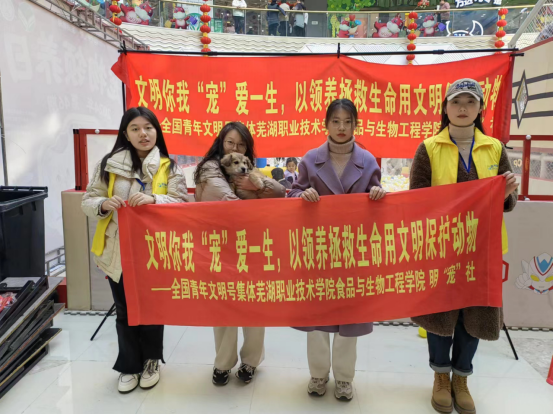 1月28日上午,我校食品与生物工程学院明宠社联合团镜湖区委组织的12名芜湖籍“返家乡”大学生一道赴镜湖区万达广场举办了第46期“文明你我 ‘宠’爱一生”流浪小动物领养日活动,吸引了众多爱宠人士驻足,成功帮助20余只“毛孩子”找到新家。