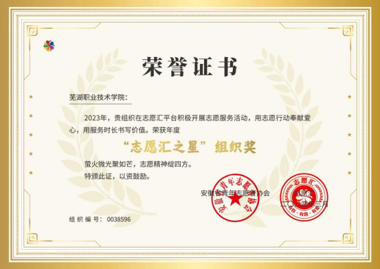 近日,省青年志愿者协会联合“志愿汇”平台开展的2023年度志愿汇优秀组织评选活动结果揭晓,我校团委志愿服务中心荣获2023年度“志愿汇之星”组织奖。