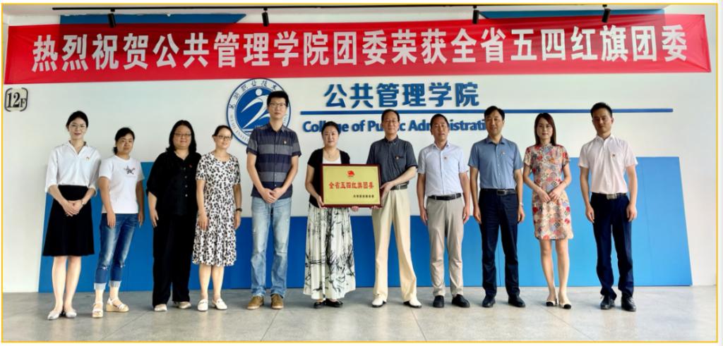 弦歌不辍、芳华待灼,勤耕不辍、志当高远。公共管理学院团委将以本次荣获“省五四红旗团委”称号为契机,在校党委的坚强领导下和校团委的正确带领下,进一步夯实团委组织基础,扎实推进团委各项工作。激励学院广大团员青年,不负韶华、不负时代,驰骋青春赛道,跑出更好成绩,持续引领凝聚团员青年,坚定不移跟党走,争做民族复兴生力军。(文/毕厚煌 图/陈舒敏 审/徐枫)