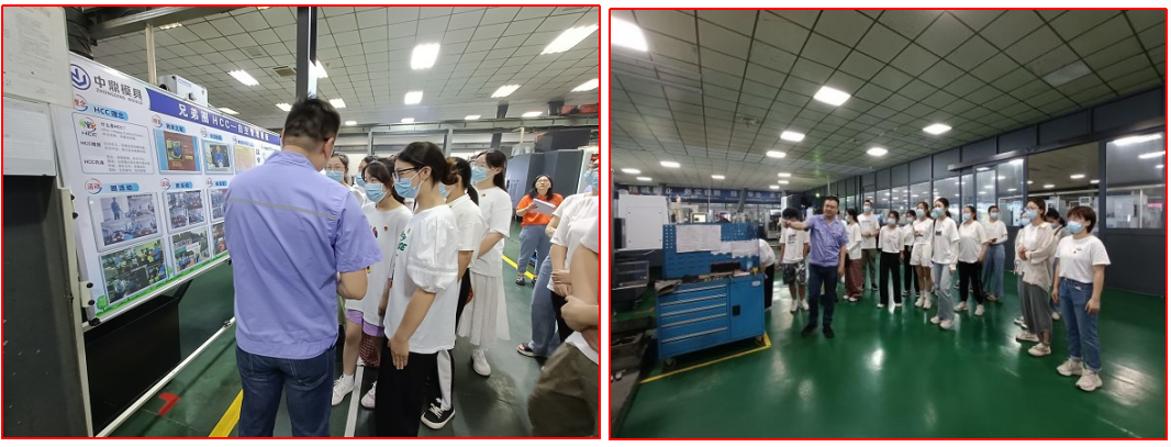 实践团队第三站来到中鼎集团。同学们了解了中鼎HCC幸福文化圈,感受温馨快乐、积极向上的企业文化。在中鼎模具车间内,同学们观看了模具制造全过程,面对车间高度自动化的生产过程,同学们深刻感受了中国制造的魅力。在参观结束后,“敬业、精益、专注、创新”成为同学们对大国工匠精神感悟的一致共识。