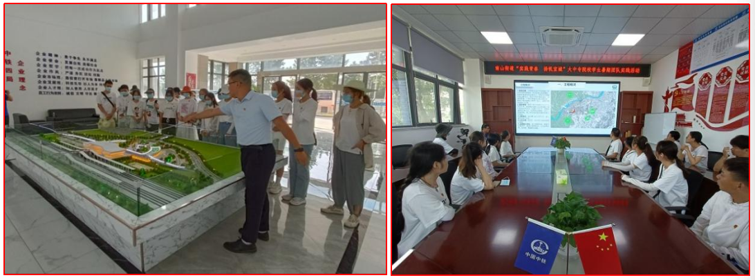 由学院师生组建的实践团队第一站来到中铁四局,通过观摩学习高铁站设计与建设方面的知识以及工程施工工序、标准化建设等内容,同学们被企业的现代化建设和科学管理所深深吸引。作为宁国学子,当参观到气势恢宏的高铁“宁国站”时,感受到了大国工程的震撼和庄严,自豪之情油然而生,也激励着他们待学成归来之时,定要为家乡建设发光发热。