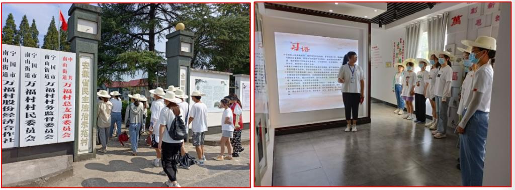 实践团队第二站来到全国民主法治示范村——万福村,同学们参观着村里的党建文化长廊,感受乡村振兴与发展,离不开党的坚强领导。漫步万福村幸福桥,干净卫生的居住环境、整齐有序的新房,同学们被万福村居民的幸福生活深深吸引。在伟人像下,同学们面朝团旗、紧握右手,重温入团誓词。作为团员青年大学生,要坚持初心使命,坚定不移跟党走,为党和人民奋斗终身。