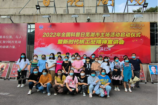 9月12日,以“喜迎二十大,科普向未来”为主题的“2022年全国科普日芜湖市主场活动启动仪式暨新时代核工业精神宣讲会”在芜湖市百花剧场举行,食品与生物工程学院教师朱广双带领2020级宠护班30名同学全程参加本次活动,活动内容包括中国科学技术馆《科技馆里的科学课》全国示范学校授牌、新时代核工业精神系列表演剧等。