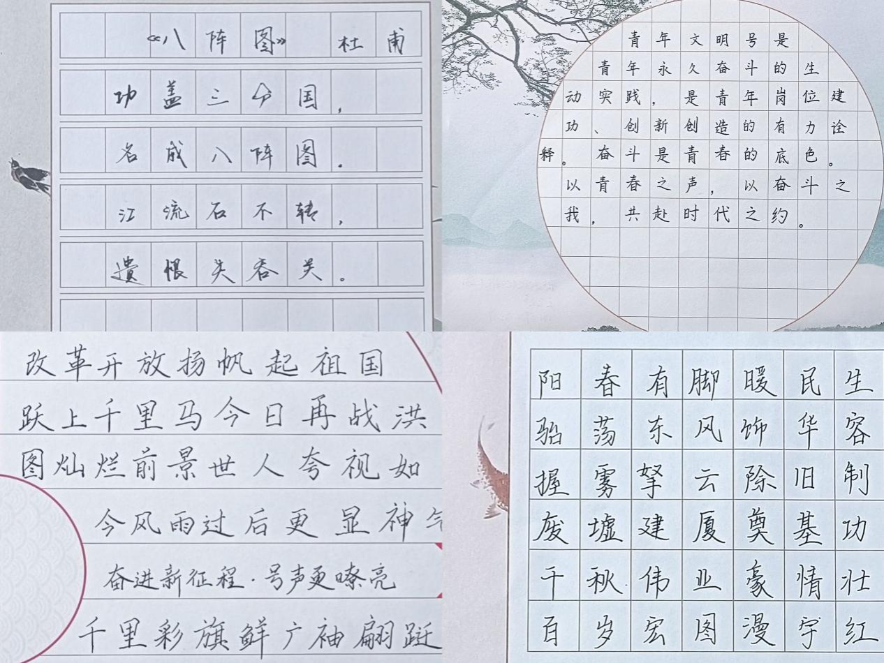 参赛作品紧紧围绕主题,抒发对党、对祖国、对人民的祝福和对志愿服务工作的热爱,展现青年在青年文明号实践中拼搏奋斗的青春身影。其中,硬笔系列作品各具风格且内容丰富,有字体端正的楷书,刚柔结合的行楷,挥洒自如的草书;绘画更是丰富多彩,有素描、国画、水彩、丙烯等多种形式,充分体现出我院学子的多才多艺,更展示了新时代青年的艺术风采。