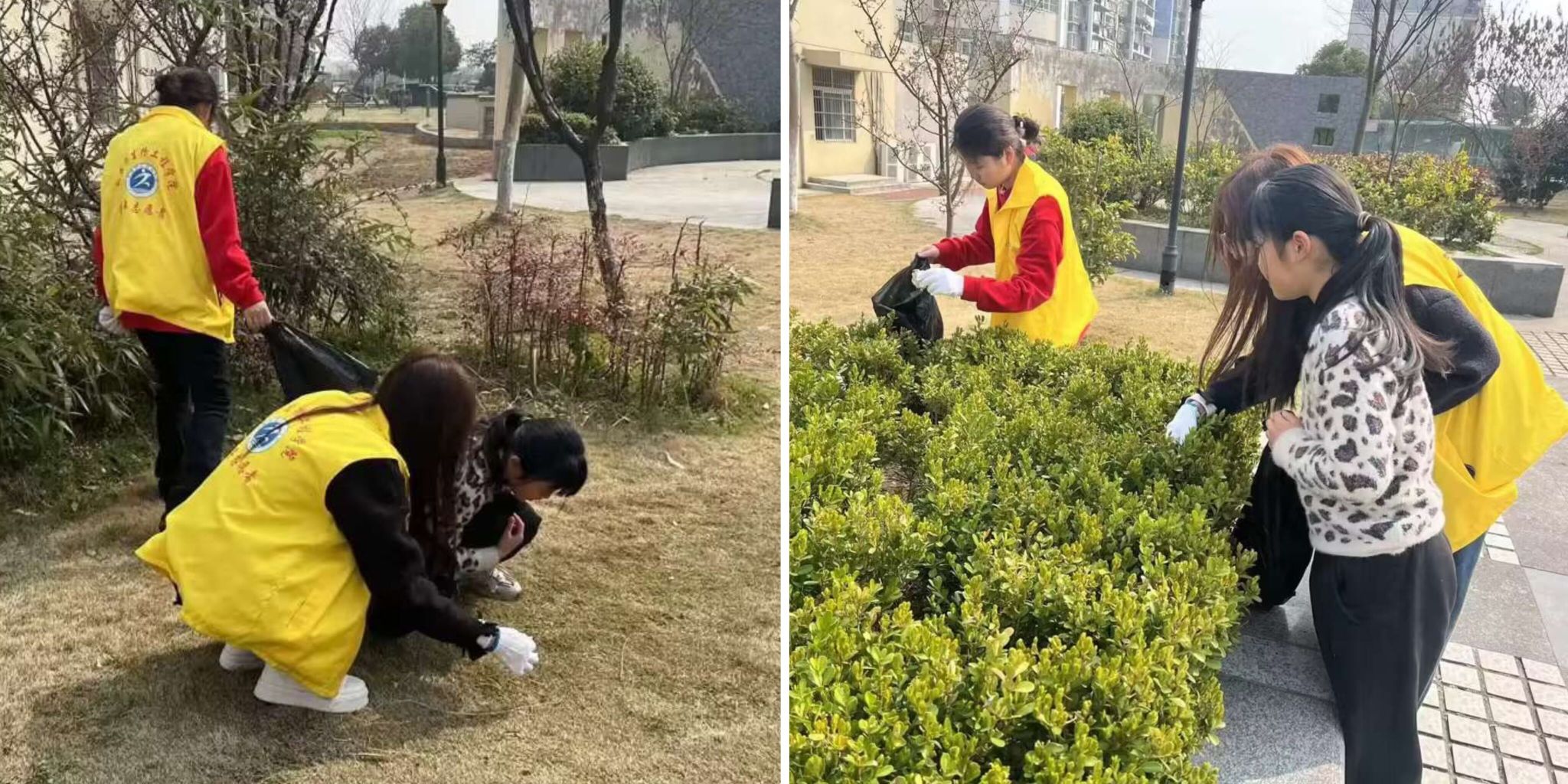 与此同时,另一批志愿者们来到社区公共活动场所开展环境清洁工作,同学们手拿扫把、钳子等清扫工具,有序对场地进行清理,秉承着“不怕脏、不怕臭、不怕累”的精神,将各处死角垃圾清扫干净。同学们身着“暖心黄”穿梭在社区各个角落,受到了社区住户们的高度赞扬。同学们用实际行动弘扬雷锋精神的同时也受到了精神鼓舞,更深刻地体会到雷锋精神的实质。