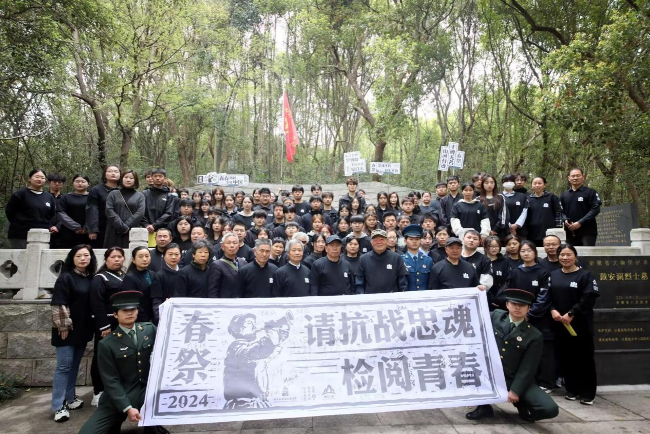 2024年3月31日,在清明节到来之际,公共管理学院团委、青年志愿者协会、军事爱好者协会师生代表与芜湖心连心爱心协会志愿者团队及其各时期老兵代表等一百多人参加了此次在安徽芜湖戴安澜烈士陵园举办的“春祭2024|请抗战忠魂检阅青春”活动。