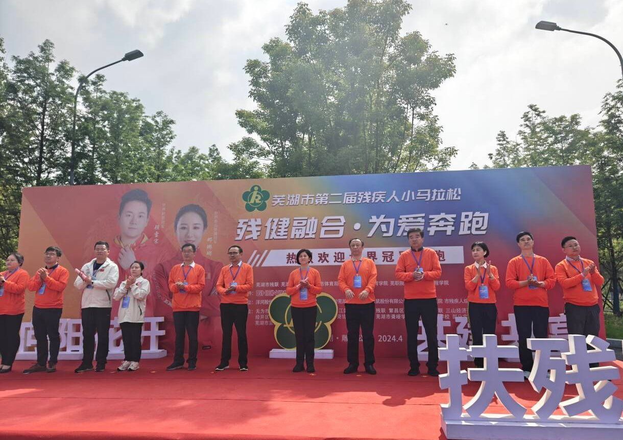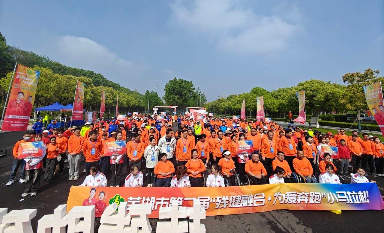 小马拉松现场,有来自芜湖市各县市区残疾人、市五大残疾人专门协会、特教学校、残疾人康复机构等29个单位组成14个方阵,共计450余人参加活动。奥运体操冠军邓琳琳、射箭世界冠军顾雪宋为“小马拉松”激情领跑。我校志愿者全程服务,全力保障活动有序开展。