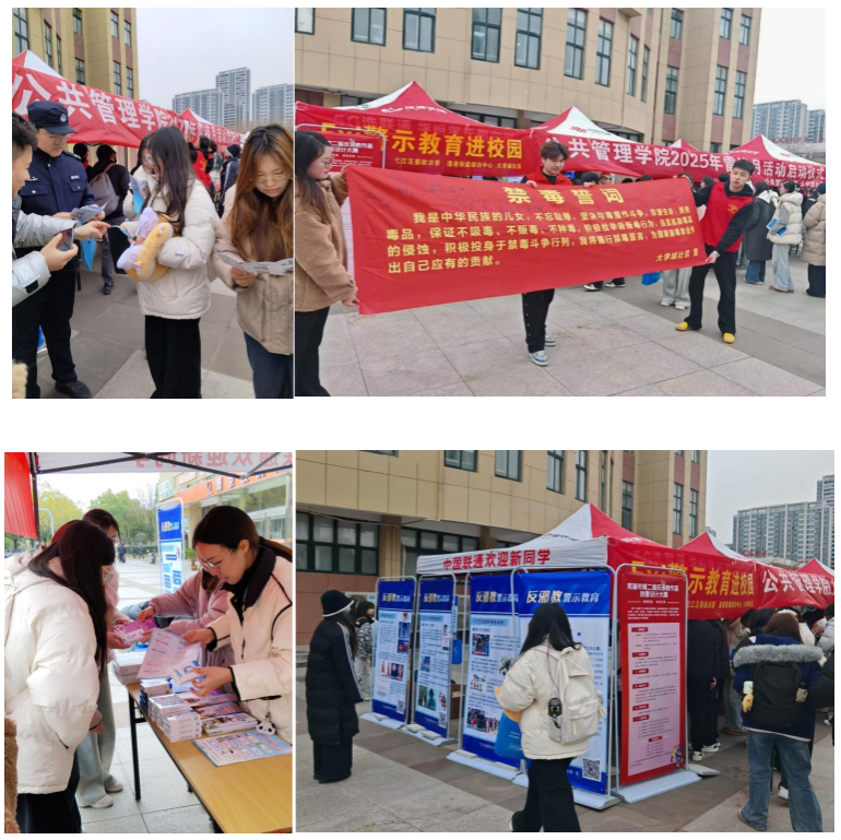活动现场分为两个区域,分别是宣传教育区和互动体验区。在宣传教育区,大学城社区工作者们向同学们进行了禁毒宣传和反邪教宣传,通过展板和资料向学生普及吸毒和邪教的危害,并发放预防电信诈骗宣传手册,增强学生的安全意识和防范能力。此外,正值三八节来临,社区工作者们还向女大学生们系统讲解了妇女相关权益和法律知识,提高女大学生的自我保护意识。