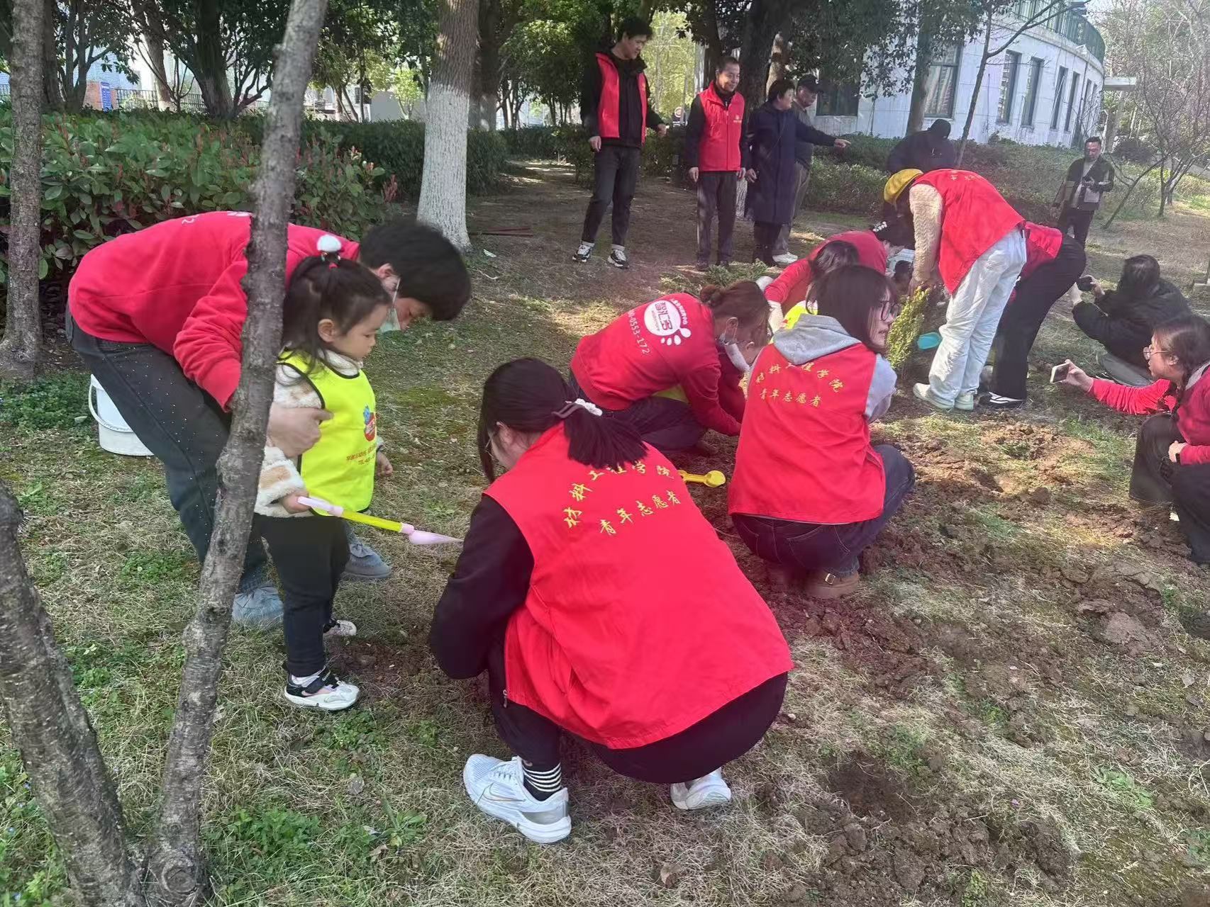在社区工作人员的指导下,志愿者们分成小组,有序开展植树活动。大家带领小朋友们分工协作、挥锹铲土、扶树正苗、夯土踩实,认真细致做好每一道工序,不一会儿,一株株新绿昂然挺立,为春色增添了一抹盎然生机,小朋友们自己动手栽下了一棵又一棵的树苗,为美化环境贡献了自己的一份力量。