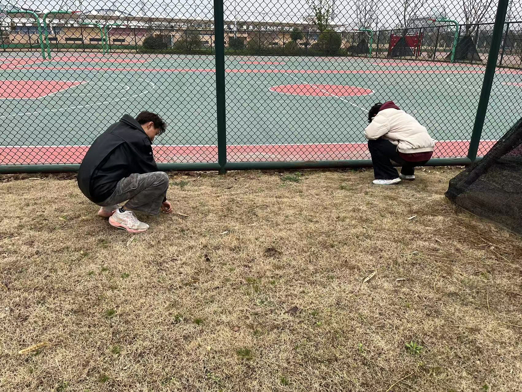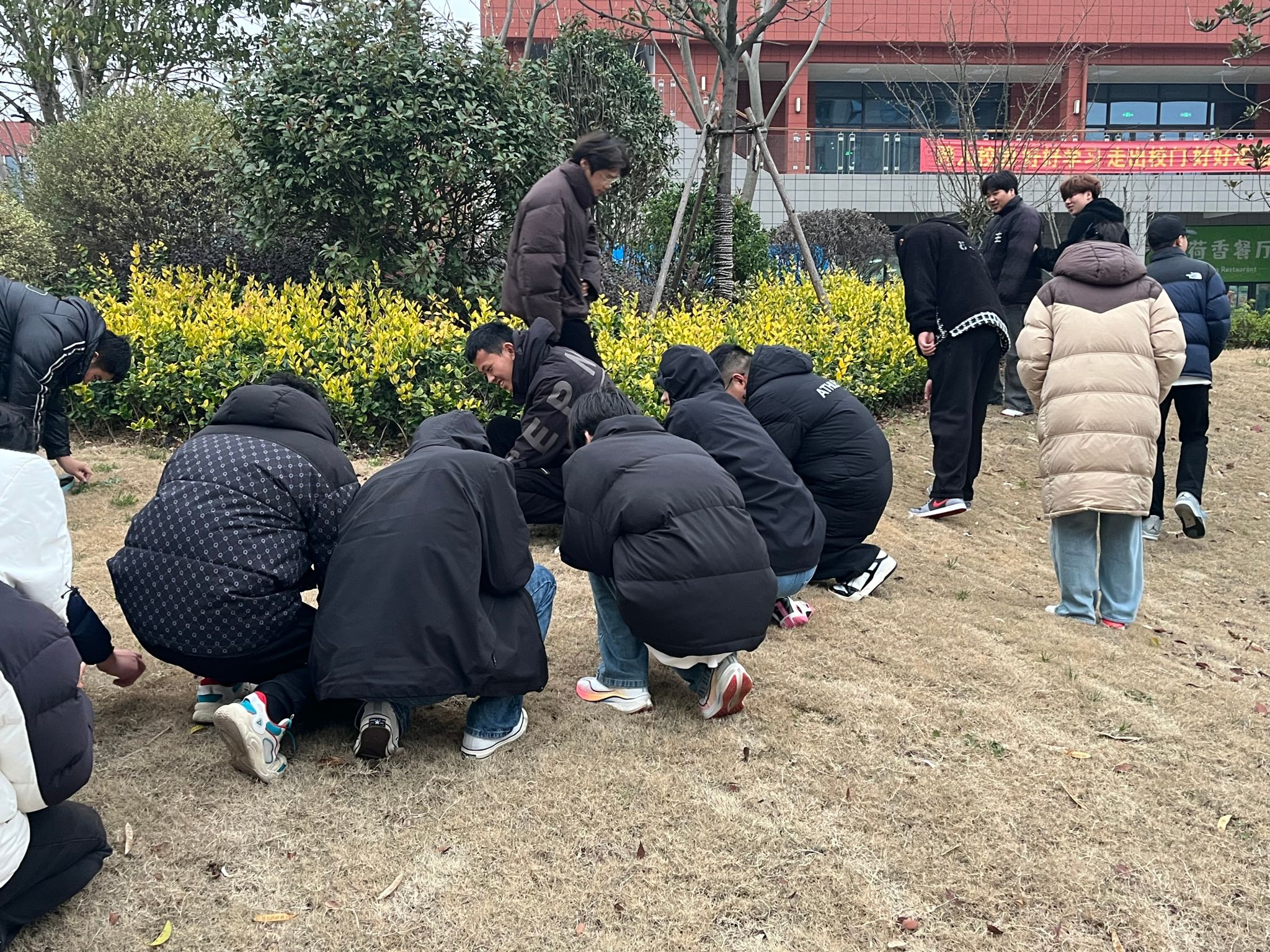 宿舍楼旁、体育场边等校园绿地上,同学们不怕脏、不怕累,认真细致地清除着每一片杂草。虽然天气有些寒冷,但他们的热情却丝毫未减。经过一个多小时的努力,校园绿地焕然一新,呈现出一片生机勃勃的景象。
