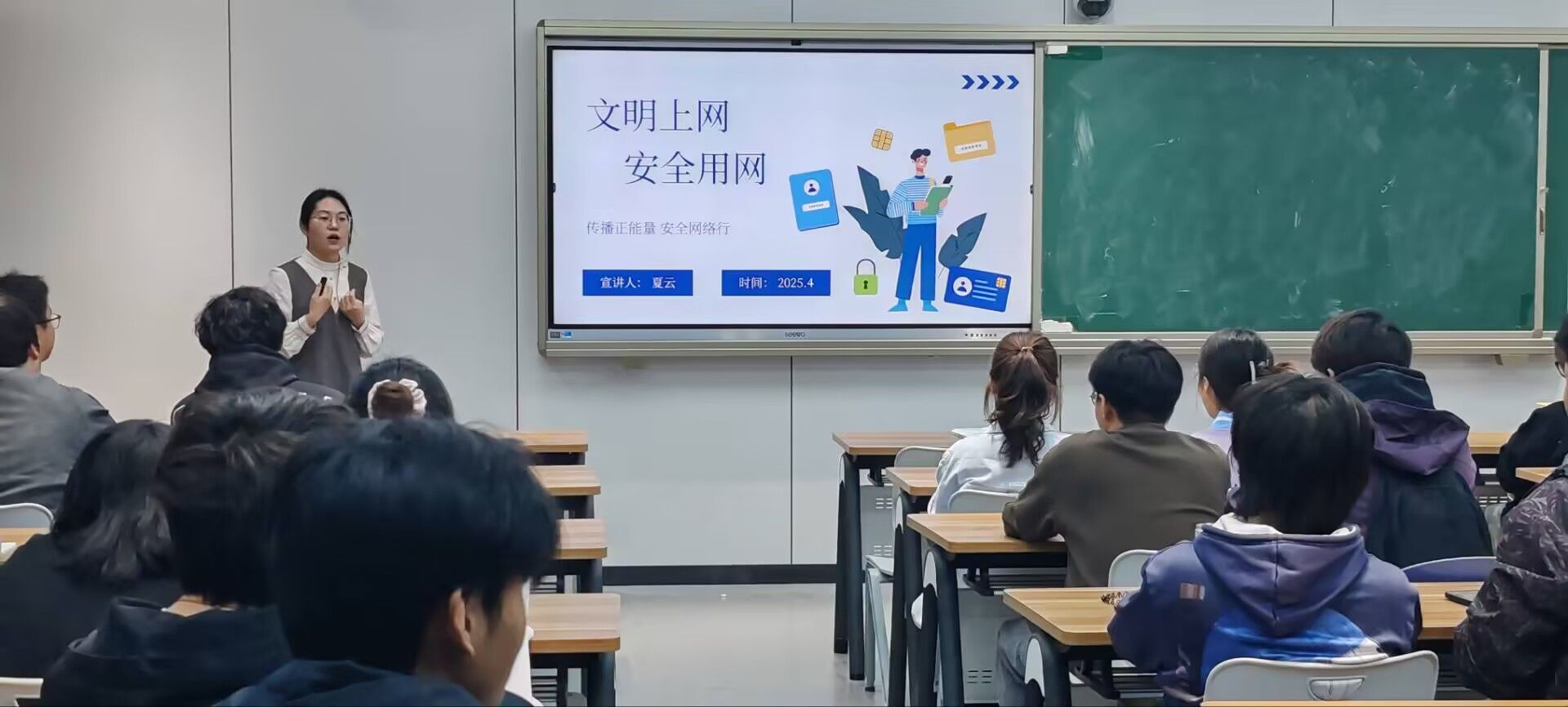 为积极响应新时代对团学干部网络素养的新要求,提升团学干部在网络空间的引领力与责任感,4月2日中午,智能制造学院团委书记夏云以“文明上网安全用网”为主题,在新多九教室给团学干部上了一堂网络素养主题团课。