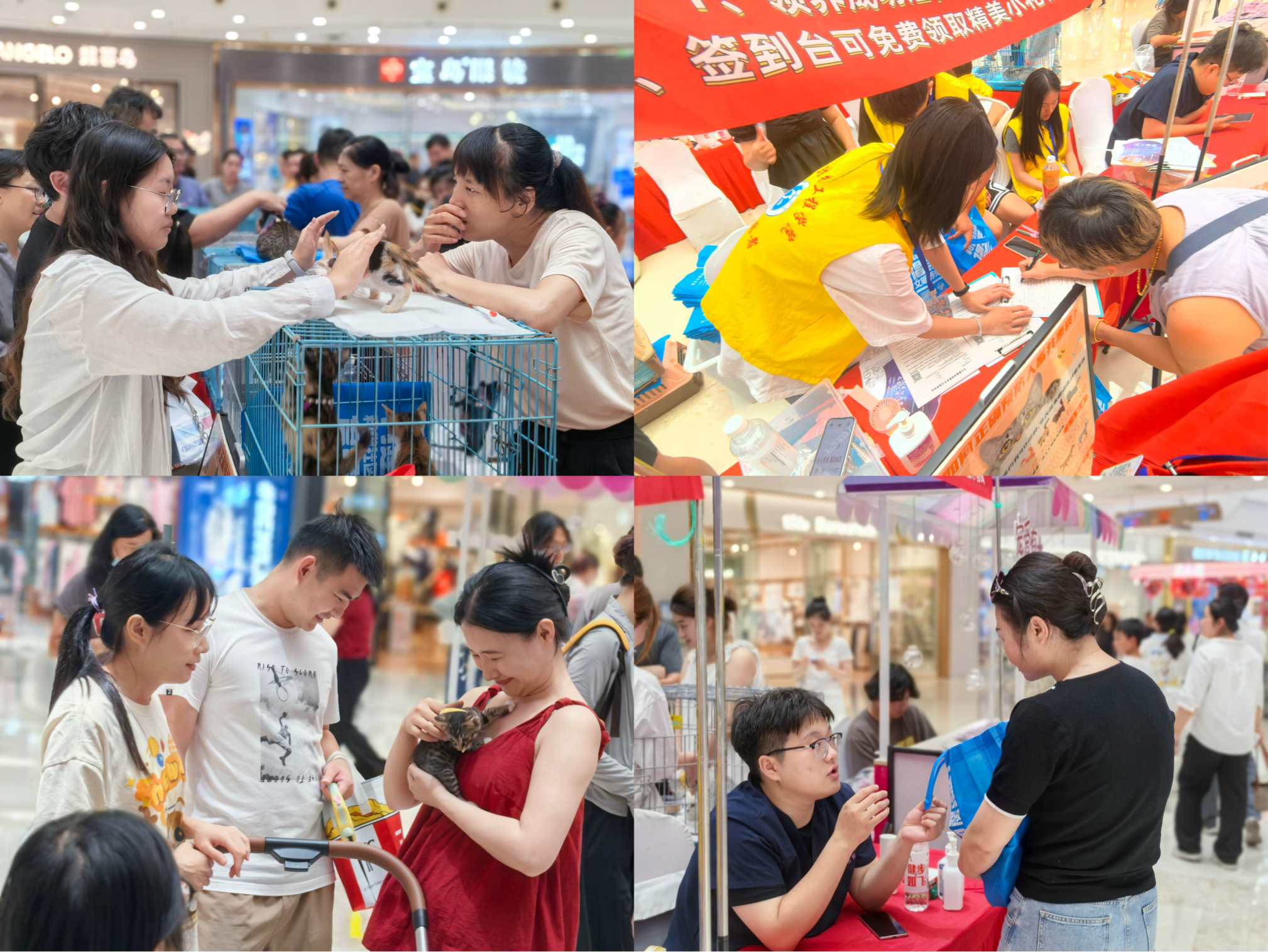 活动现场,志愿者们通过设立咨询台,耐心为人们解答有关小动物健康问题、宠物行为纠正、狂犬病与人畜共患病、犬只办证指导等方面的疑问。志愿者们还通过一系列趣味活动,引导民众加入到养宠知识问答互动中,传播文明养宠理念。志愿者们用实际行动践行了新时代青年的责任与担当,在专业医师的帮助下,成功让47只猫狗和1只仓鼠找到新家。