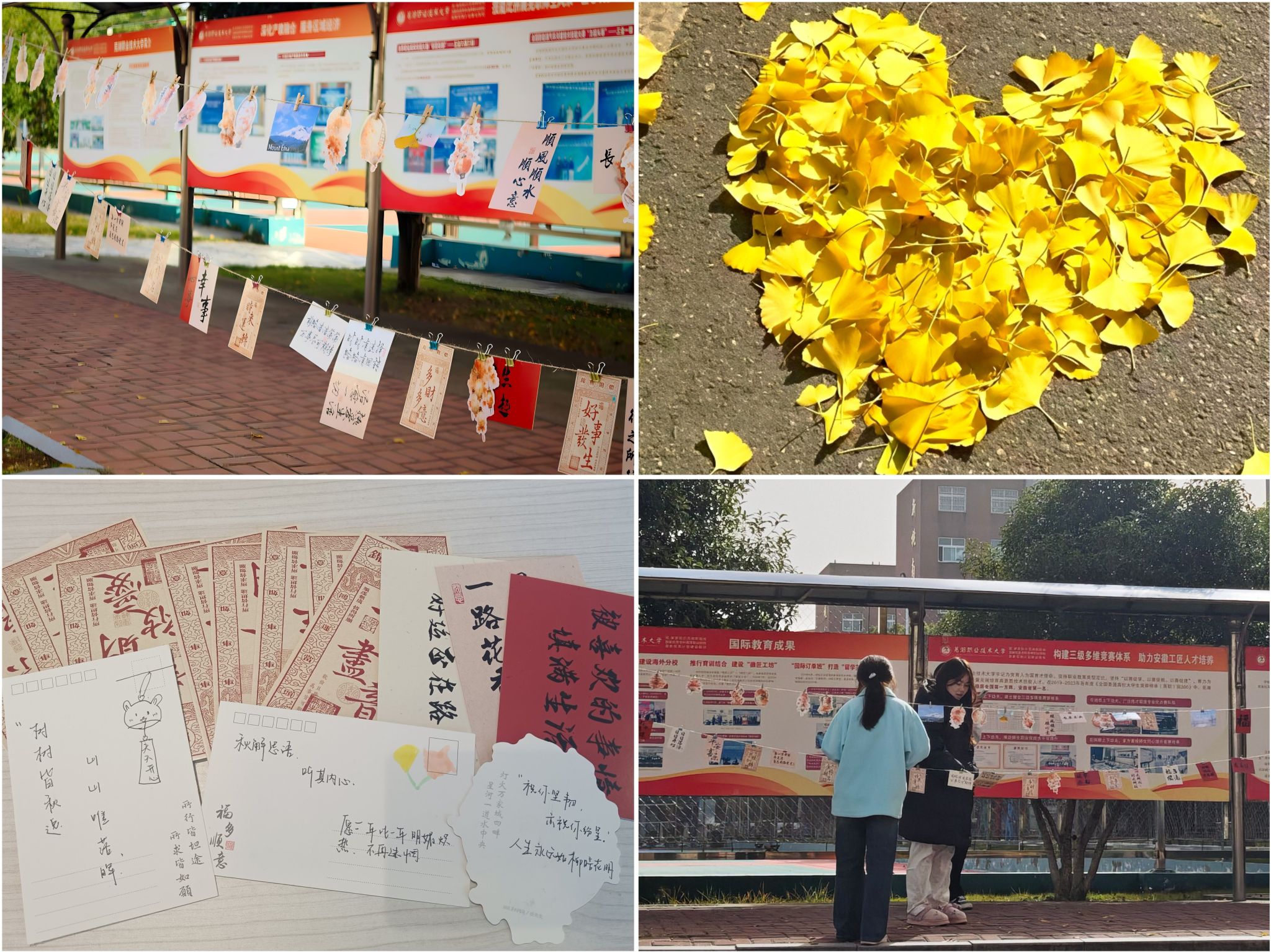 11月27日,“银杏寄思,时光慢递”活动为学校增添一抹诗意。当日校园小径被金黄银杏铺满,百余位学子以银杏为媒,在定制纹样卡片上手写青春期许与亲友思念,同学们将卡片串联悬挂于银杏枝头,最终封存进“时光档案盒”。活动负责人介绍,这些卡片将在2026年秋季时返还给同学们,目的在于“借银杏让大家慢下来,给成长留痕”。轻摆的卡片与金叶相映,成为校园里“有温度的风景”,让“慢递”成为连接当下与未来的温暖纽带。